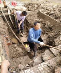 五月一日凌晨三點(diǎn)多鐘,宜城市振興大道聯(lián)通公司門(mén)前直徑400mm的鑄鐵管突然爆管。正值五一小長(zhǎng)假,為了能在最短的時(shí)間內(nèi)恢復(fù)供水,公司領(lǐng)導(dǎo)接到市民報(bào)警后,及時(shí)組織搶修人員趕赴事發(fā)地點(diǎn),根據(jù)現(xiàn)場(chǎng)情況,迅速制定搶修方案,組織搶修人員緊急開(kāi)挖,并同時(shí)制作搶修配件。當(dāng)時(shí)宜城正天降大雨,搶修人員的衣服很快就濕透了,雨水與泥土形成的泥漿濺滿(mǎn)了他們?nèi)?,路過(guò)的市民紛紛投來(lái)了敬佩的目光。雖然一身雨一身泥,大家全然不顧,心中只有一個(gè)念頭:盡快把管道維修好保證正常供水,讓市民過(guò)一個(gè)快樂(lè)的五一勞動(dòng)節(jié)。大家齊心協(xié)力,克服一切困難,連續(xù)作戰(zhàn),最終比預(yù)計(jì)的搶修時(shí)間提前了五個(gè)小時(shí)恢復(fù)正常供水。