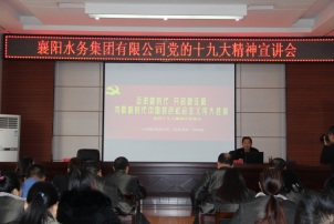 根據(jù)市國(guó)資委黨委的統(tǒng)一安排,12月25日下午,市國(guó)資委黨委委員、副主任鄧世海來(lái)到襄陽(yáng)水務(wù)集團(tuán)有限公司開(kāi)展黨的十九大精神專題宣講。集團(tuán)公司本部全體干部職工、襄陽(yáng)中環(huán)水務(wù)有限公司班子成員及基層黨支部書(shū)記和黨務(wù)工作人員共50余人參加了學(xué)習(xí)。