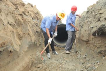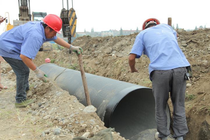 8月31日中上午11時許,天氣陰冷,烏云低垂,一場大雨即將來臨。在內(nèi)環(huán)南路-沿江大道段供水管網(wǎng)施工工地上,卻是一派機器轟鳴、熱火朝天的施工景象。襄陽中環(huán)水務(wù)供水工程有限公司第五項目部施工員王俊,正和另外5名施工員一起,鋪設(shè)內(nèi)環(huán)南路-沿江大道長達3.2公里、直徑1.2米的供水主管網(wǎng),解決余家湖片區(qū)居民家中水壓低的問題。